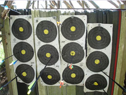 Les cibles sont des images animalières comportant une zone "tué" et une zone "blessé". La taille de ces blasons est comprise entre 30 et 80 cm.