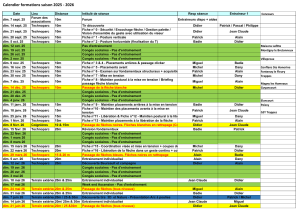 Les entrainements de ces deux groupes ont lieu le samedi de 14h à 15h30 selon le calendrier ci-après (cliquer sur l’image pour agrandir)
