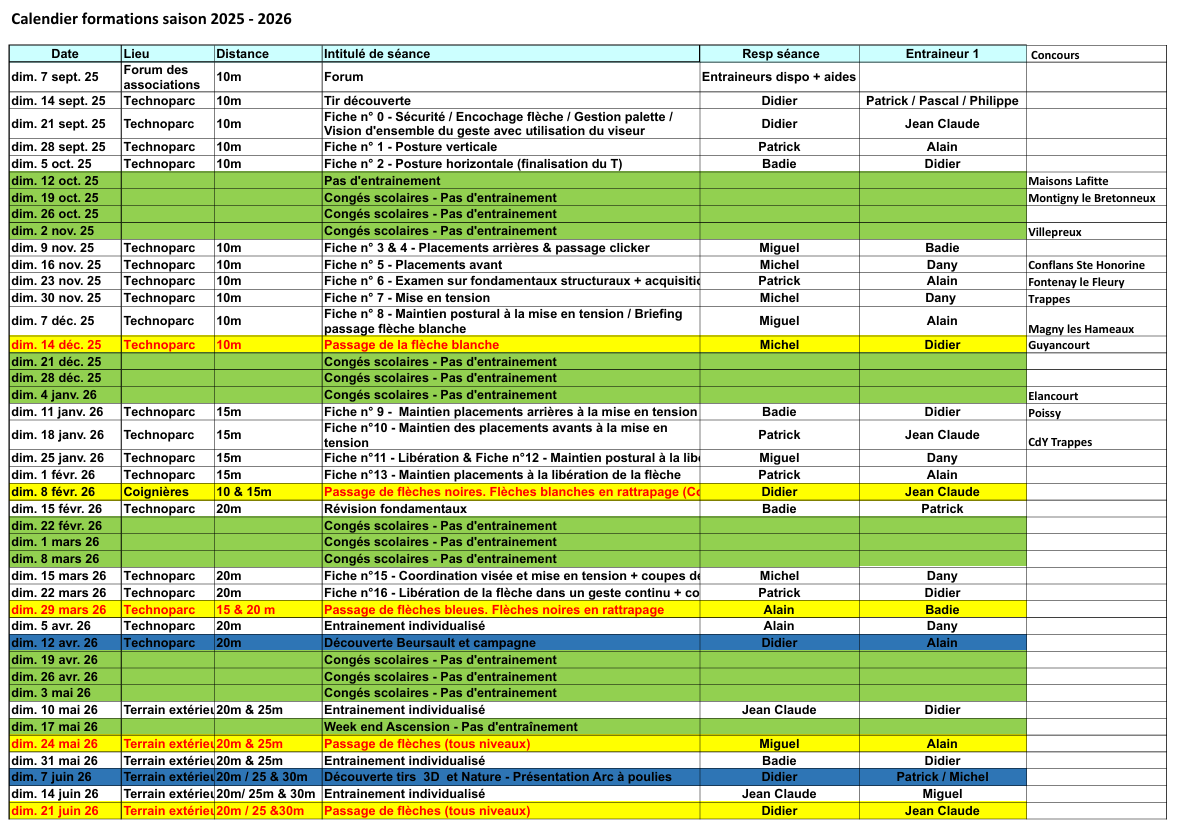 Pour la saison 2024-2025 nous n’avons pas été en mesure de mettre en place ce groupe faute de disponibilité d’un entraîneur Brevet d’Etat en tir à l’arc.