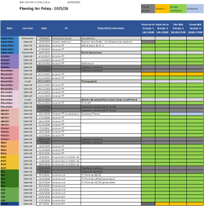 Les entrainements de ces deux groupes ont lieu le samedi de 15h30 à 17h30, avec le calendrier ci-dessous (cliquer sur l’image pour agrandir)